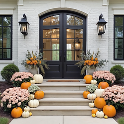 Our Harvest Elegance package is the perfect balance of abundance and refinement. We curate a mix of statement-sized pumpkins, medium accents, and charming minis to create a warm, inviting entryway. Designed for effortless curb appeal, this set delivers all the beauty of autumn without the hassle of sourcing or arranging. 2 oversized pumpkins for a bold foundation 6 medium accents to frame your steps with symmetry 10 small pumpkins for layered depth and color 8 specialty pumpkins in unique textures and shades 10 mini pumpkins to scatter as finishing touches Every detail is placed to feel intentional, seasonal, and picture-perfect. Pumpkins may vary in size, shape, and attitude.